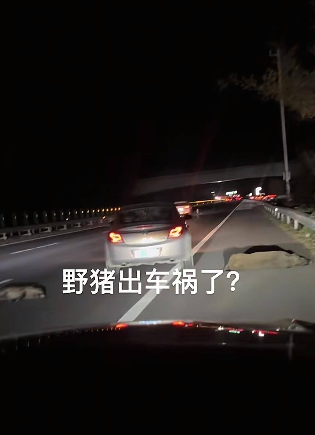 网友拍摄的行车记录仪显示,10月3日晚6时44分,他驾车行驶在高速公路上,前方道路突然出现野猪群横穿道路,该网友及时减速,但无奈车速太快撞到野猪群,导致部分野猪被撞飞。记者注意到,事发时间在晚上,发现野猪前,该网友的车速为每小时105km。